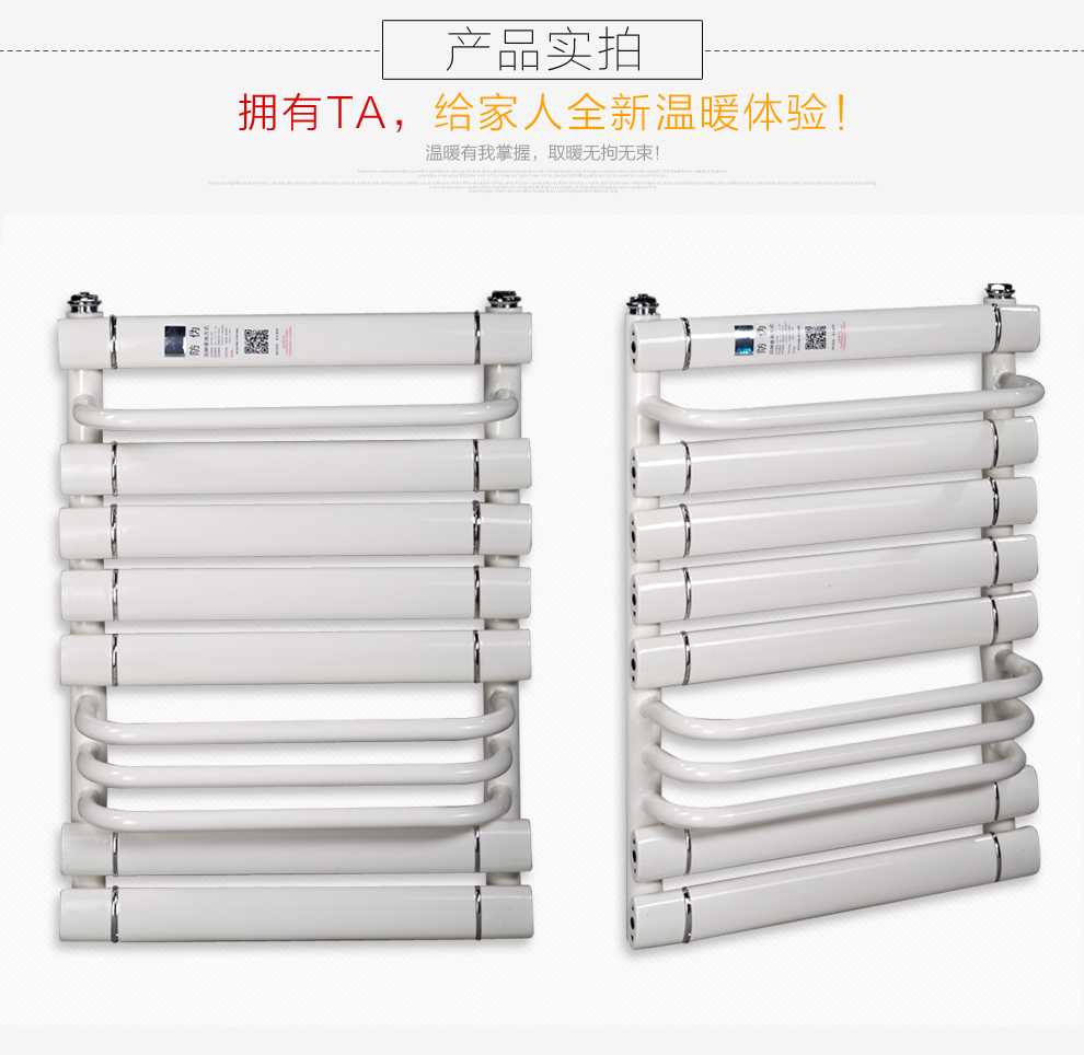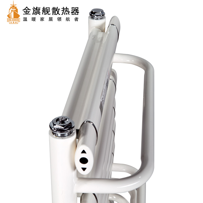 金旗舰卫浴暖气片简约、时尚、美观、大方,既可以取暖,又可以作为毛巾架使用,是卫生间必备产品;其容水量大,水流量大;全辐射散热,比对流暖气片对水温要求低,反应灵敏,一旦启动,立即加热您的皮肤和空气;停暖后,仍能持续供暖,直至水温降至室温水平。
