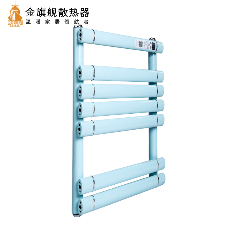 金旗舰卫浴暖气片简约、时尚、美观、大方,既可以取暖,又可以作为毛巾架使用,是卫生间必备产品;其容水量大,水流量大;全辐射散热,比对流暖气片对水温要求低,反应灵敏,一旦启动,立即加热您的皮肤和空气;停暖后,仍能持续供暖,直至水温降至室温水平。