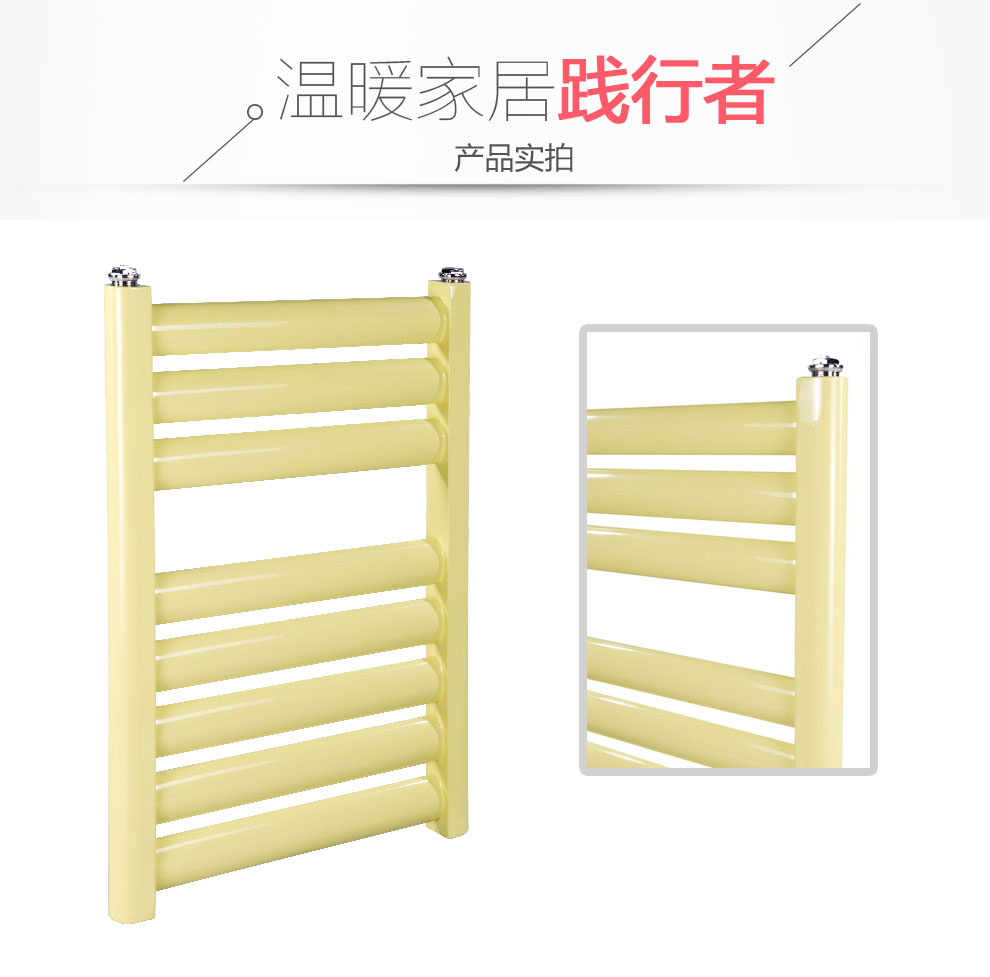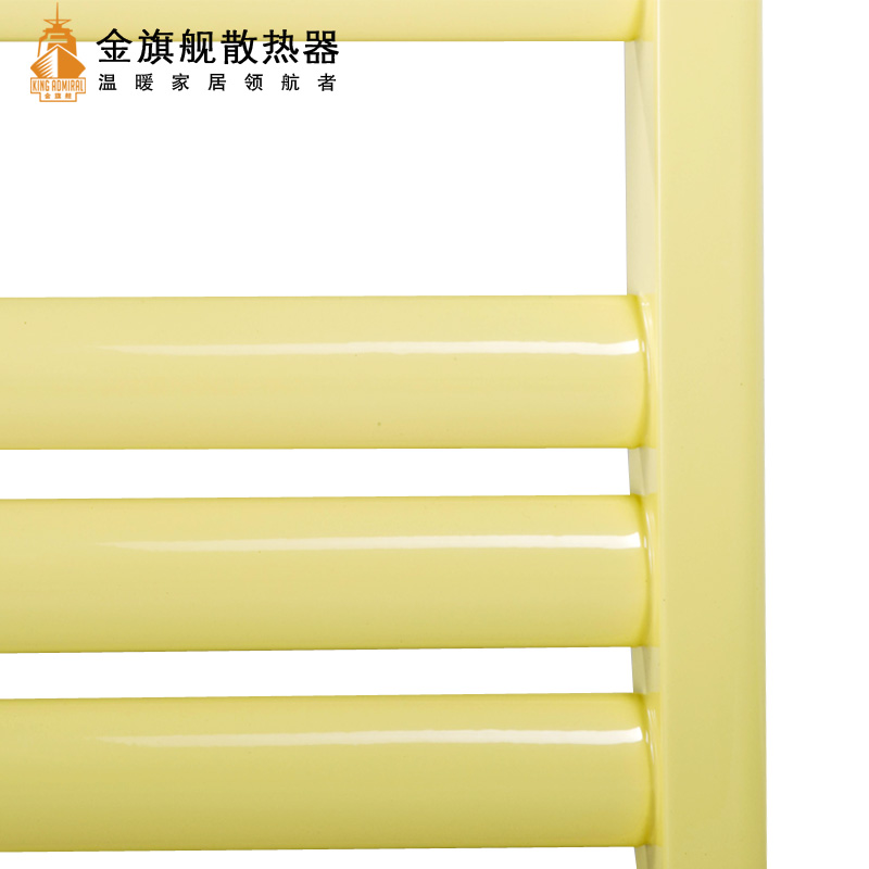 金旗舰卫浴暖气片简约、时尚、美观、大方,既可以取暖,又可以作为毛巾架使用,是卫生间必备产品;其容水量大,水流量大;全辐射散热,比对流暖气片对水温要求低,反应灵敏,一旦启动,立即加热您的皮肤和空气;停暖后,仍能持续供暖,直至水温降至室温水平。