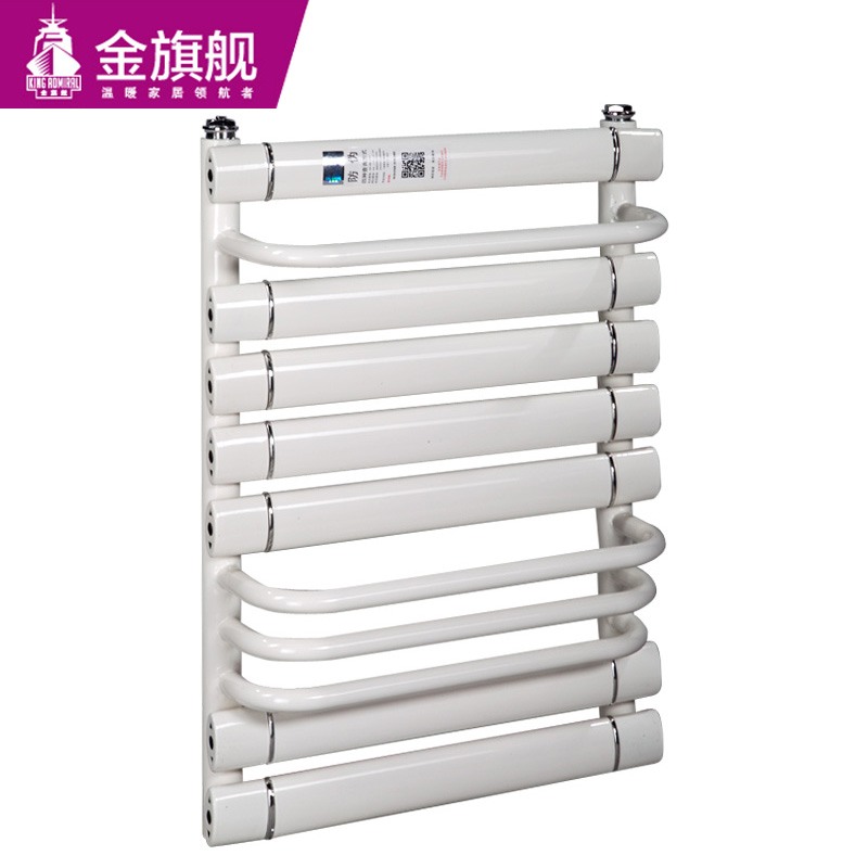 金旗舰卫浴暖气片简约、时尚、美观、大方,既可以取暖,又可以作为毛巾架使用,是卫生间必备产品;其容水量大,水流量大;全辐射散热,比对流暖气片对水温要求低,反应灵敏,一旦启动,立即加热您的皮肤和空气;停暖后,仍能持续供暖,直至水温降至室温水平。