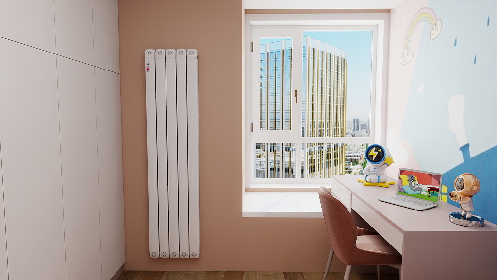 热水流经散热器,铝制翅片/钢制板体通过热辐射+对流释放热量;